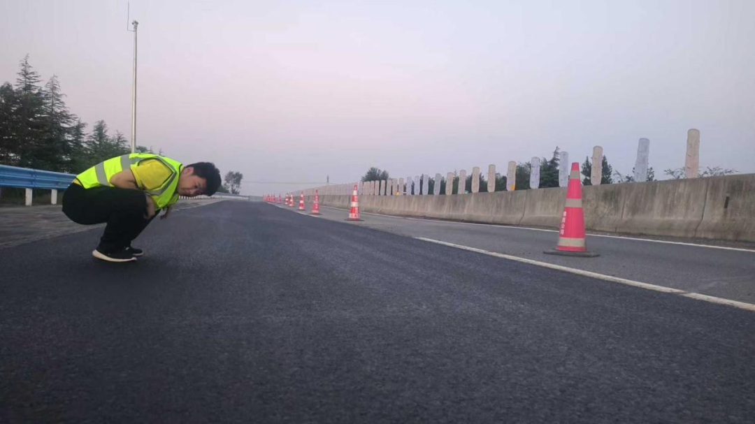 施工作业过程中,严格按照路面维修技术规范,确保修复后的路面平整度与强度达标。同时,合理规划作业区域,设置警示标识、安排专人疏导交通,确保养护作业安全可控,实现“养护施工”与“道路畅通”的高效平衡。截至10月13日,洛卢段完成路面铣刨1.1㎞,沥青路面摊铺600m,有效改善了雨后道路通行条件,筑牢安全通行防线,充分展现高速养护队伍的专业担当与路况品质。