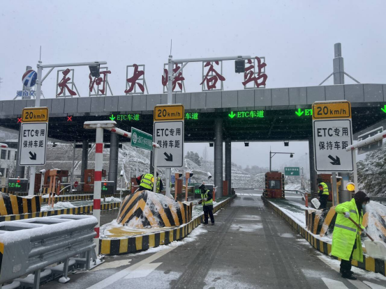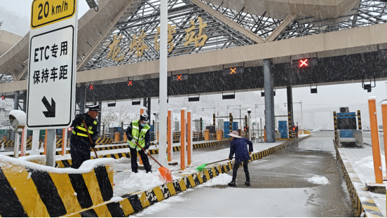 降雪路段,各收费站迅速组织人员、调配物资,高效开展除雪保畅工作。鸡冠洞站员工分工协作,快速清理收费广场、车道等重点区域积雪;伊河源站同步推进积雪清扫与融雪剂精准撒布;龙峪湾站迅速组织当班人员,以最快速度完成收费区域除雪;天河大峡谷站全员化身“除雪卫士”,各站全力清除路面积雪积冰,有效保障了车辆通行条件与收费站区秩序。
