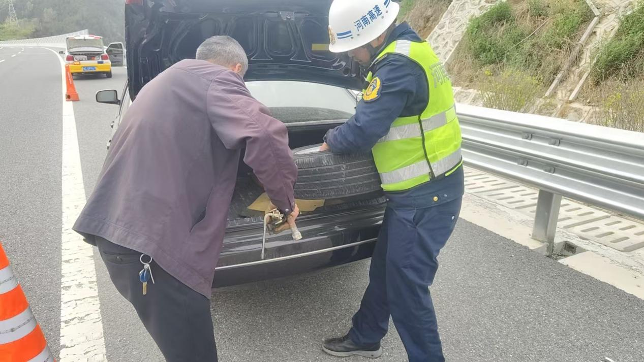4月9日下午,路产人员在日常巡查至K22+000下行路段时,发现一辆车辆因爆胎停靠在应急车道,司乘人员正面临困境。中队人员第一时间引导车辆驶入安全区域,并规范摆放交通锥,做好现场安全防护,严防二次事故发生。经了解,车辆突发爆胎导致无法行驶,且司乘人员不具备更换备胎经验。随后,路产人员立即取出工具,熟练开展备胎更换作业,从拆卸旧胎、安装备胎到紧固螺丝,各环节操作规范高效。仅十余分钟,轮胎便更换完毕。路产人员还向司乘人员叮嘱行车安全注意事项,提醒其尽快检修轮胎。此次救助不仅及时解决了司乘的出行难题,以实际行动践行了路产人员“服务司乘、保障畅通”的职责使命。