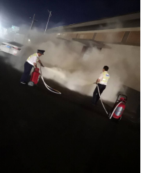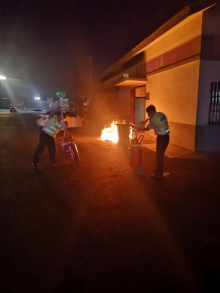 6月1日晚上,周山收费站夜班收费人员正在值班期间,忽然发现收费广场厕所旁突然燃起大火,火势凶猛严重威胁旁边所停车辆安全。当班备勤员毫不犹豫,立即携带灭火器冲向着火点,一名同志呼叫指挥司机快速将车辆驶离着火区域,另外两名名同志打开灭火器控制火势。由于扑救及时,避免了一起严重的火灾事故,有效保护了人民群众生命财产安全。