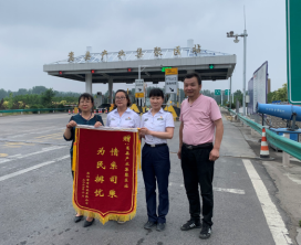 6月11日下午,为表谢意,车主将一面写有“情系司乘 为民排忧”的锦旗送到了嵩县产业集聚区收费站。