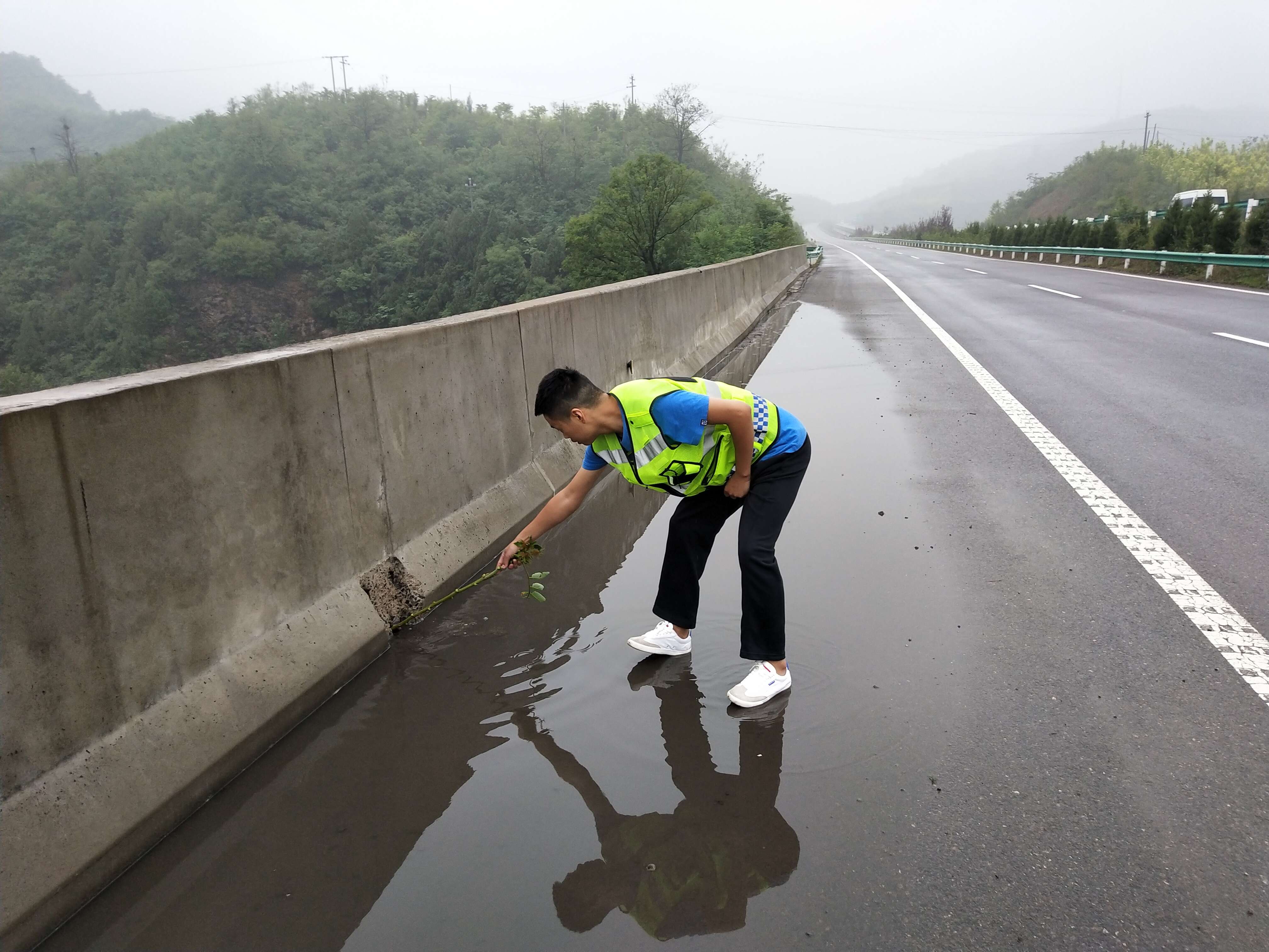 根据降雨预警情况,6月16日,九龙山养护所组织人员全面开展沿线排水设施检查并及时疏通堵塞排水孔,全力保障汛期通行安全。